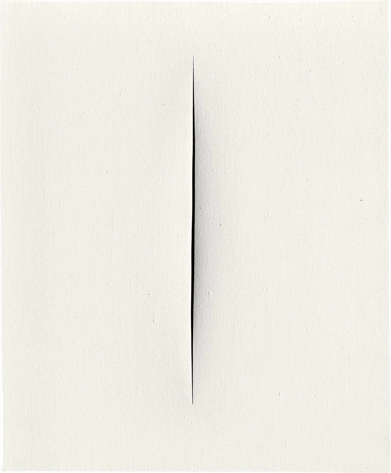 As Fontana created the present lot, slicing his blade down the center with a mastery of precision, he was in the midst of the most successful year in his lifetime for the rising popularity—and rising prices—of his work. Fontana’s relentless quest to popularize his work the world over— by attending a vast number of openings and exhibitions—was a testament to his belief in his original forms, one that incorporated his faith in scientific progression and human advancement for the better of humanity. Though many would characterize the simplicity inherent in Fontana’s forms as a precursor to the Arte Povera movement of the late 1960s and early 1970s, his canvased-based structures were, in fact, models for a new scientific understanding of the world: “He wanted scientists to direct part of their research towards discovering luminous and malleable substances and instruments capable of producing new sounds to facilitate the development of art: provided always that these scientists were aware of the vital necessity of space.”(G. Brownstone, “Un Evolutionnaire de l’Art”, Lucio Fontana, Paris, 1970, pps. 15-16)