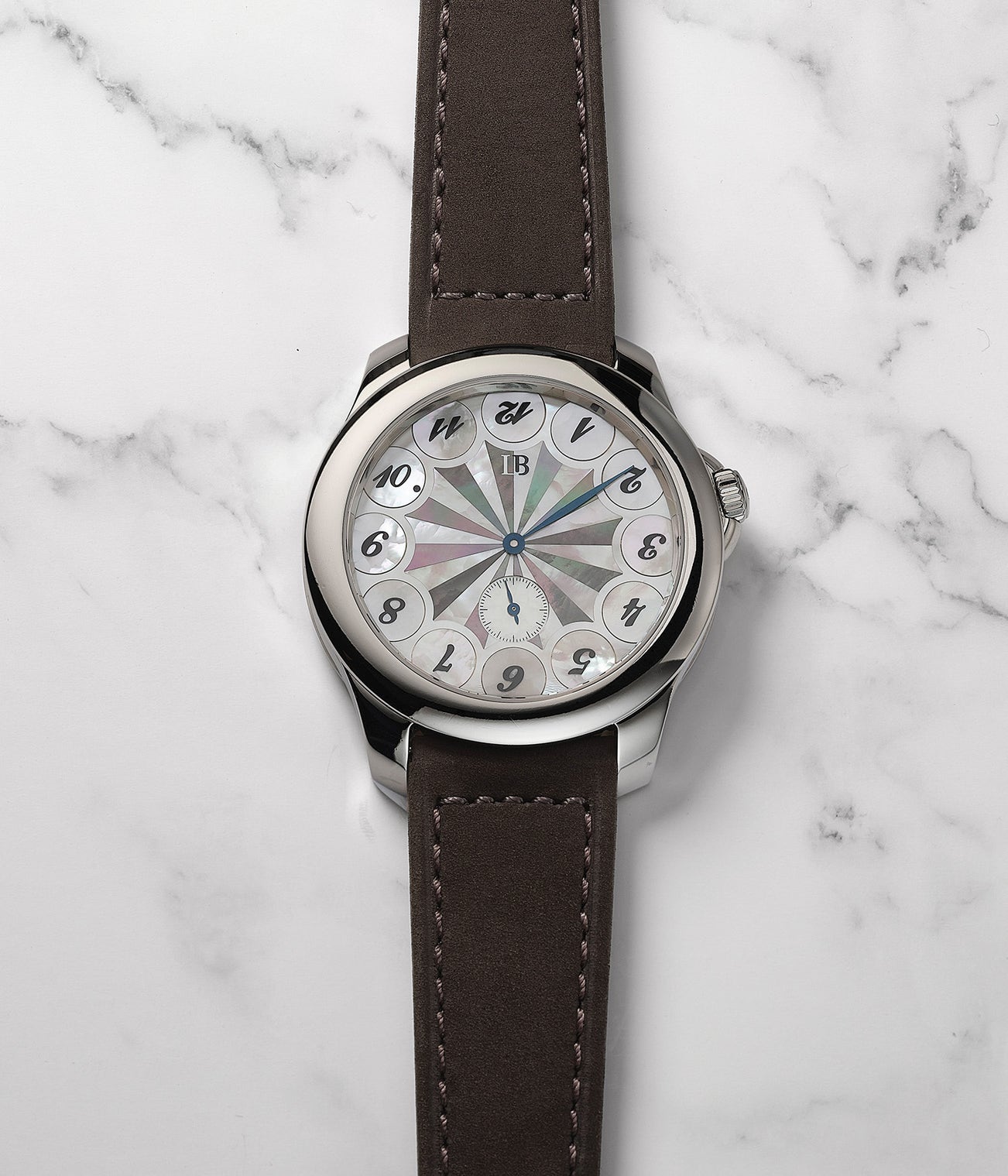 One cannot help but be amazed by the sheer beauty and sophistication of the dial of the present Ludovic Ballouard Upside Down with marquetry mother of pearl dial, a painstaking process that only a handful of artisans can master and which provides for a glamourous result with the different inlays of colored mother of pearl.