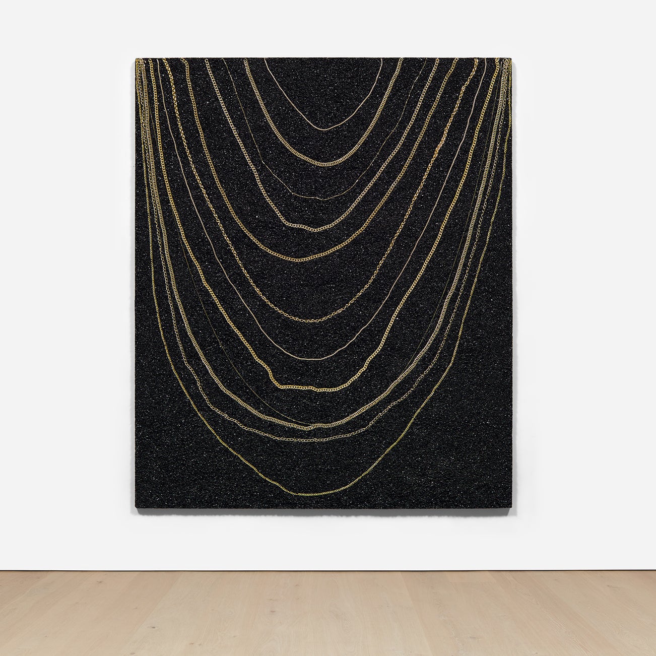 polychromed stones and gold-plated rope chains, mounted to aluminum