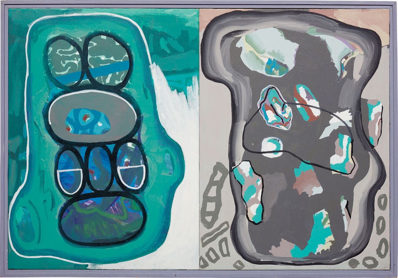 oil on canvas, in two parts, in artist's frame
