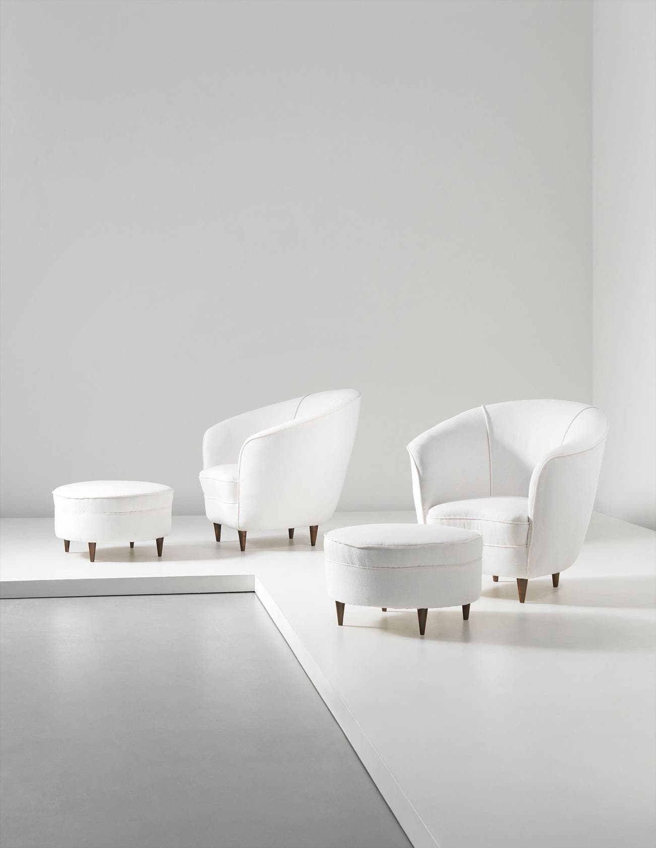 Pair of armchairs and footstools, from the XXX Fiera Campionaria, Milan