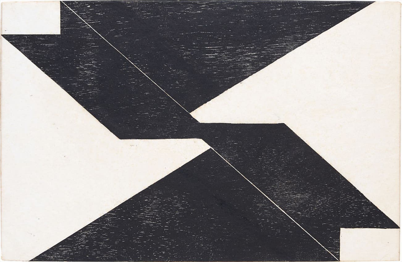 The present lot is an important and early example of Lygia Pape’s oeuvre, and one that helped establish her as a key figure of the Neoconcrete movement in Brazil during the late 1950s and early 1960s. As in other Tecelares, meaning weavings, this work demonstrates the way in which Pape took full advantage of the texture and characteristic grains of different types of wood in order to introduce a wide spectrum of black, while still weaving white through the pores on the surface of the engravings. In order to do so, Pape used lower quality woods that were grainier and full of pores to open rays of light or white color, and in this way, transformed these engravings into fascinating lacelike tecelares. These white lines go on to form virtual planes that produce a sense of depth, one that depicts the elements of space. The geometric figures and patterns apparent in this work also represent a constant and recurring theme in these tecelares, which, as she aptly described, are “the most distant to any allusion to the exterior work, and much more expressive on their own” (Editoriales Museo Nacional Centro de Arte Reina Sofia, 2011, p.86).Furthermore, it is intriguing to see the contrast between control and freedom evinced by these works. While all of the choices Pape made in creating these mesmerizing pieces were tightly controlled—from the selection and quality of the material to the meticulous decisions behind the final impression—the relationship between natural wood, ink, and paper also reveal a sense of freedom. It is a freedom partially explained by the fact that her work often contested the art historical canons of the time by transcending planes and the dissemination of light and space; an aspect that is also unique to her artistry and distinguished her from other Neoconcrete contemporaries.