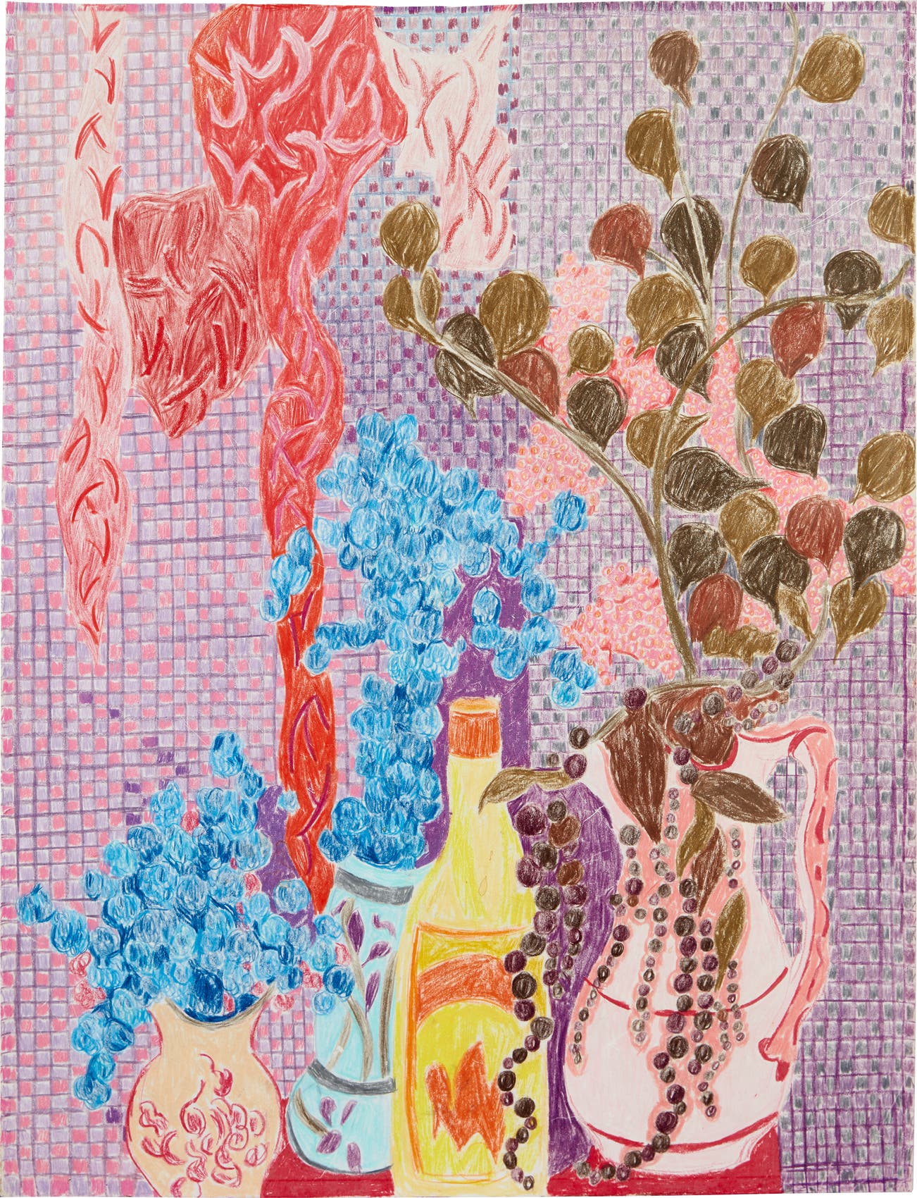 coloured pencil and crayon on paper