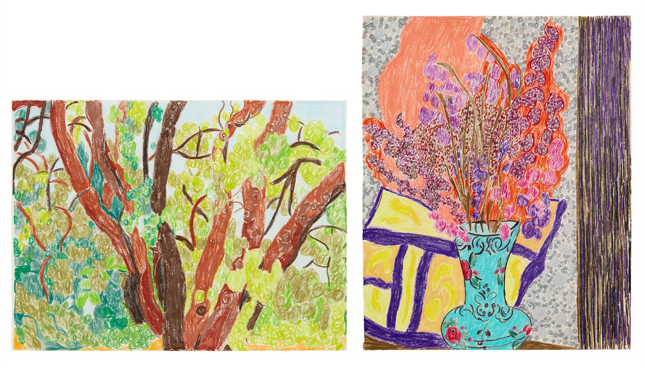 coloured pencil and crayon on paper
