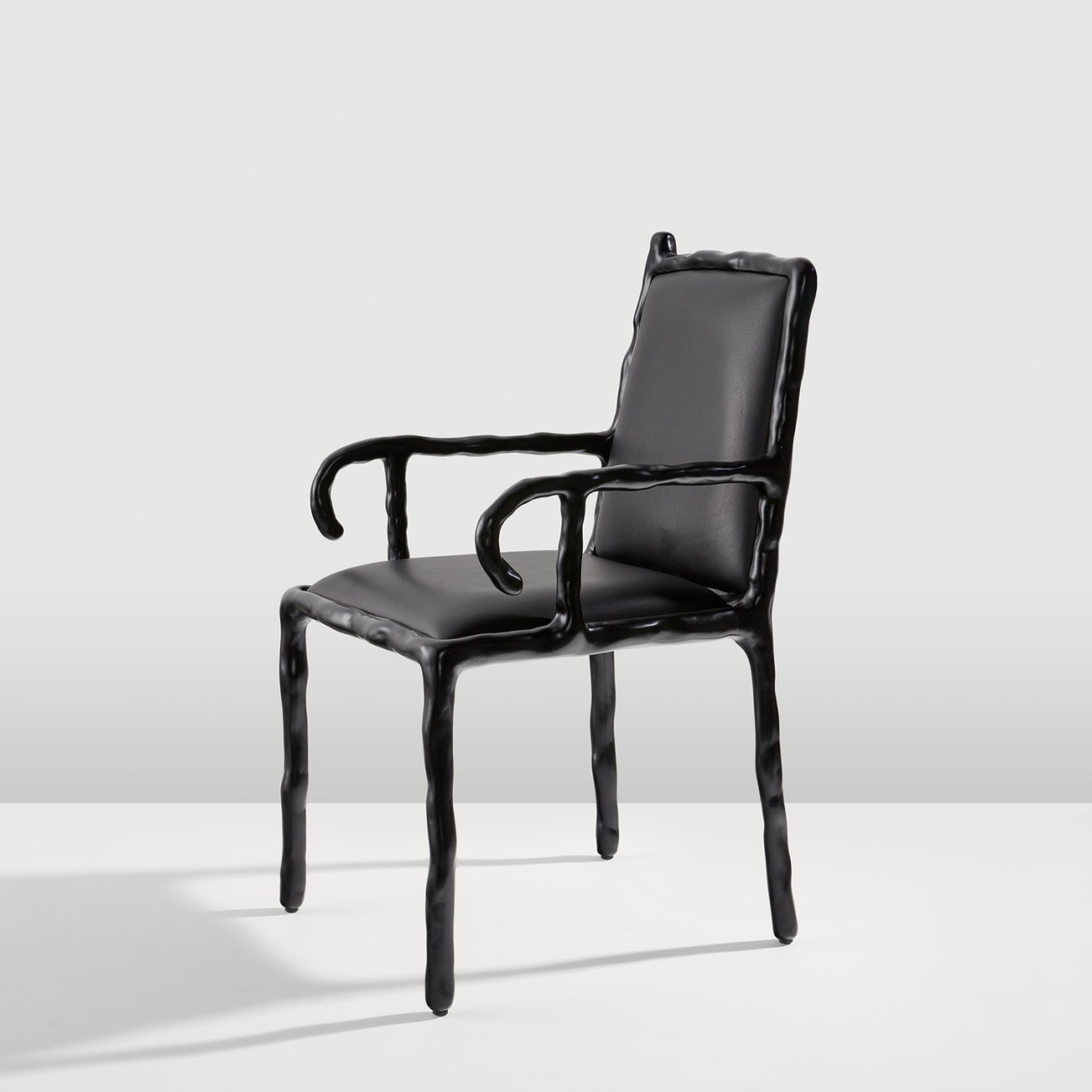 Reverse of chair inset with metal lettering BAAS, underside with metal plaque printed BAAS/CLAY by Maarten Baas and signed in marker Maarten.