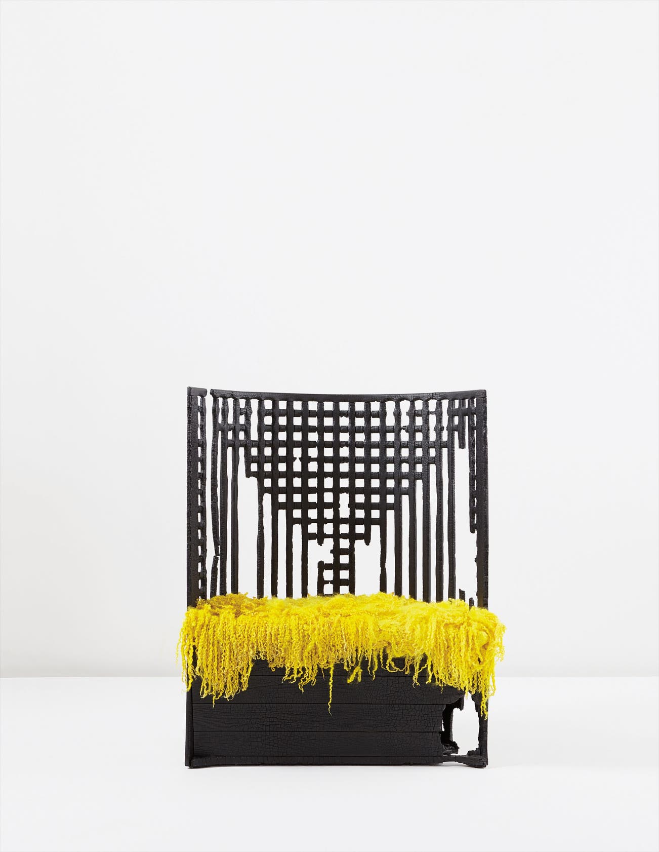 Charred pre-existing Charles Rennie Mackintosh “Willow” chair, epoxy resin, Wensleydale felt.