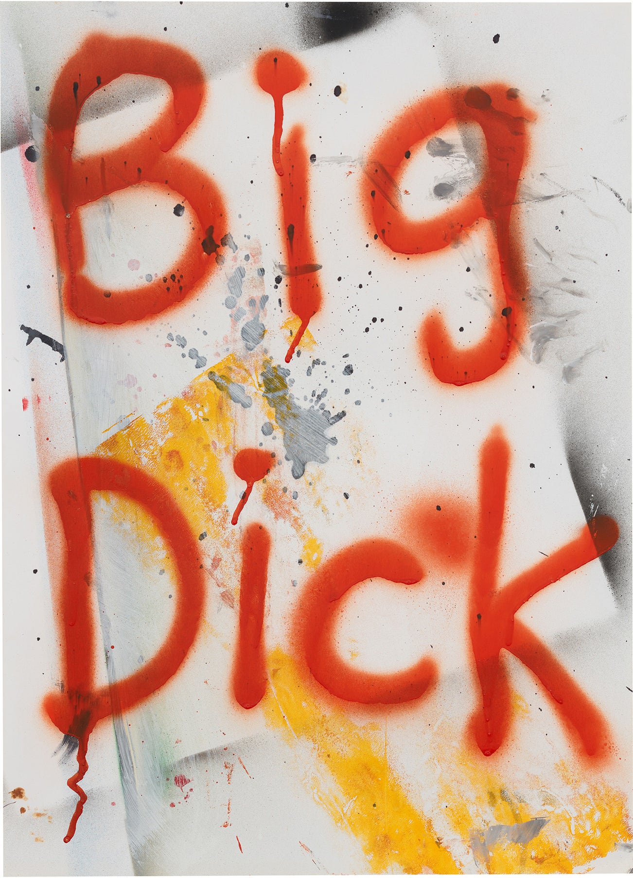 Executed in 2013, BIG DICK, BONER and SHOOT THAT MILKSHAKE are all visually striking text-based works by Osaka-born contemporary artist MADSAKI. Praised by fellow Japanese icon Takashi Murakami as ‘bottomless talent’, MADSAKI is widely acclaimed for his grungy works that employ humour as both a distraction and therapy for the artist’s inner emotional troubles. Unveiled at MAD Love in 2015, an exhibition hosted by the Museum of Art & Design, Singapore in conjunction with Singapore Art Week, MADSAKI alongside eight other renowned international artists were invited to create pieces that interpret and recontextualise the extremities of love, sex and desire. Exploring the intensity of love and our perceptions to the subject, the present works distinctively showcase MADSAKI’s witty attitude that forms both his aesthetic and personality. The artist is represented by several prominent international art galleries, including Galerie Perrotin and Kaikai Kiki Gallery in Tokyo.