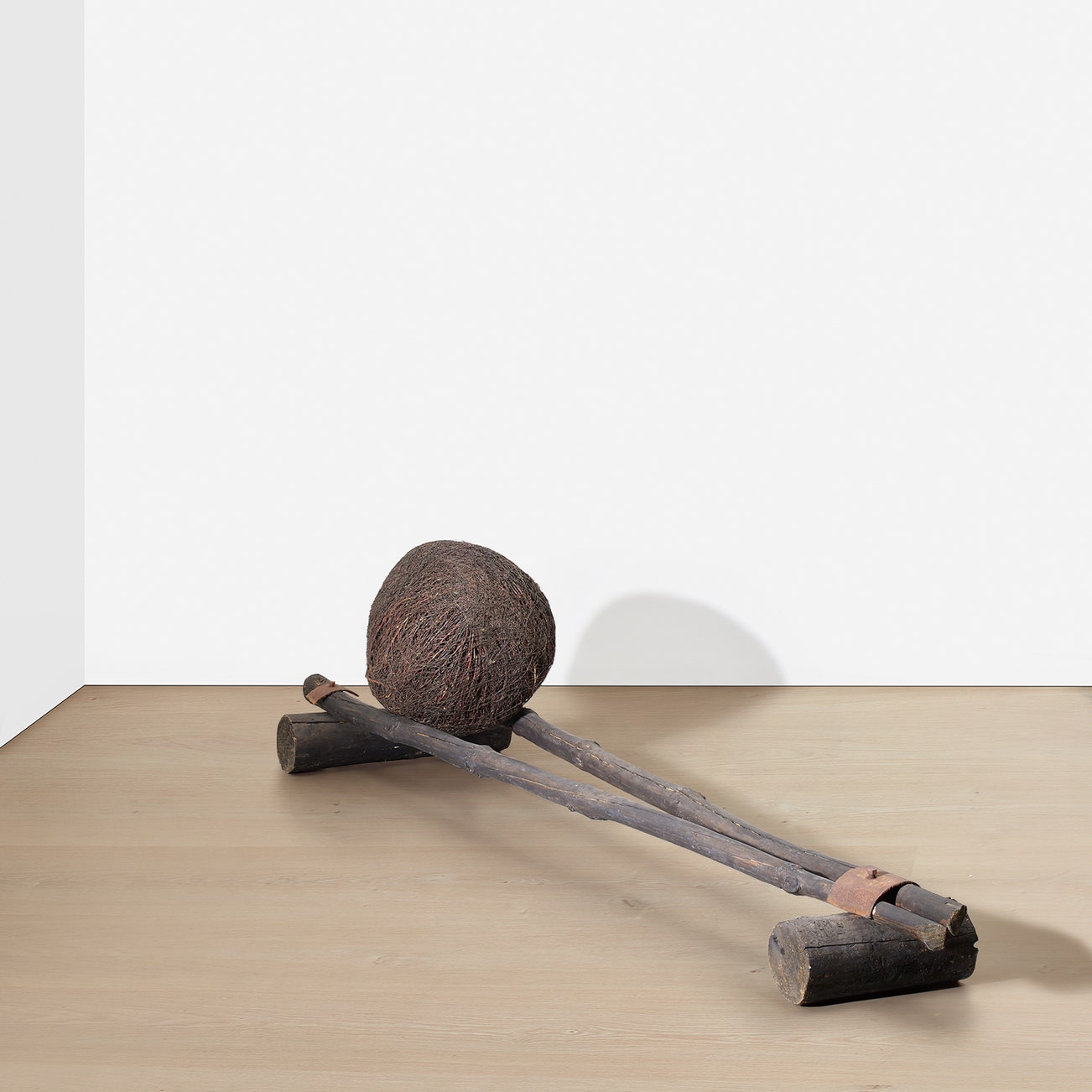 stained wood, metal, branches and wire mesh, in 2 parts