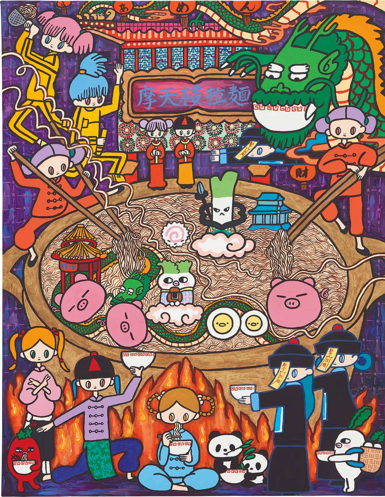 signed, titled and dated '"Skyscraper Ramen [in Kanji]" 2018 Maki Hosokawa' on the reverse