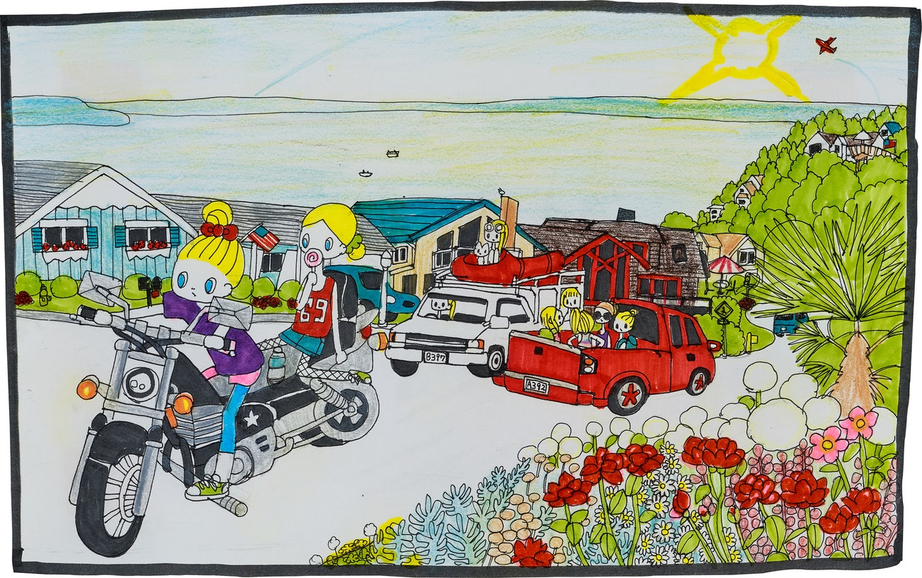 signed, titled and dated '"Let's go to Seattle!" 2011 Maki' on a label affixed to the reverse
