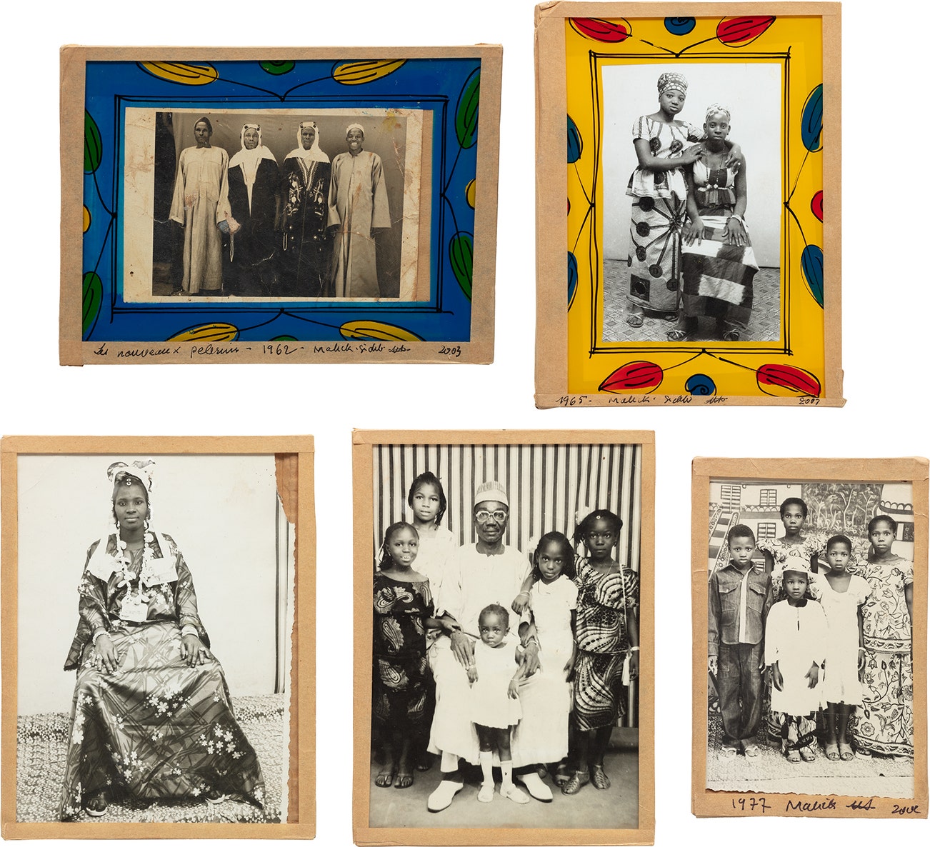Five gelatin silver prints, each in an artist's frame, two with a hand-painted border.