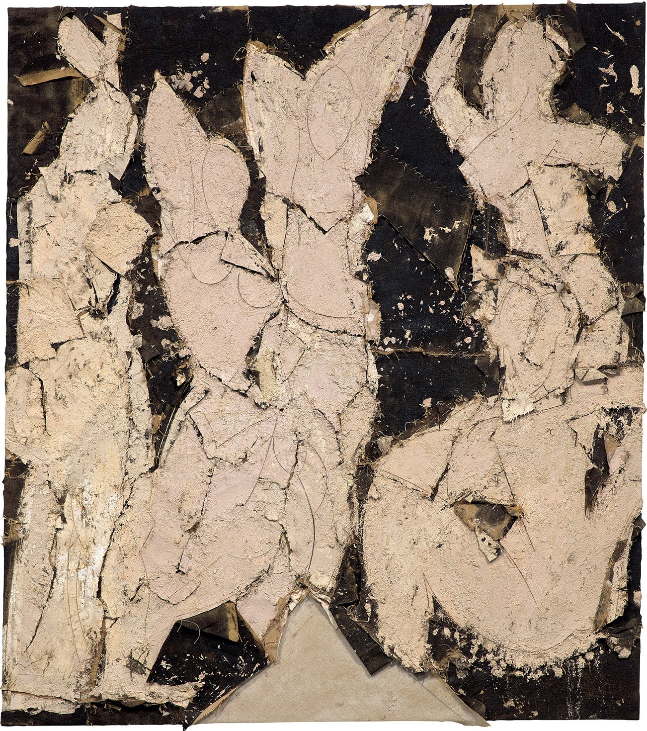 oil, twine, staples and burlap collage on burlap