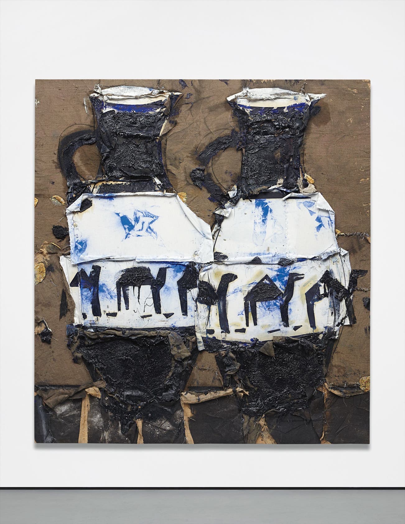 Anforas shows the artist’s characteristic play with art history, culture and politics. In this lot, the artist turns Classical conventions of artistic beauty on their head, combining a deliberate primitive painting style with visual anachronism. The amphora, an ancient Greek vessel for wine or oil, traditionally depicts images of the ancient gods and goddesses; here Valdés has chosen to replace the conventional figures with camels and pyramids. His intentionally crude application of paint onto hessian provides further juxtaposition to the smooth and stylised lines of Greek vases. The resulting visual confusion is the artist’s playful attempt to re-engage the viewer in our collective cultural history.
