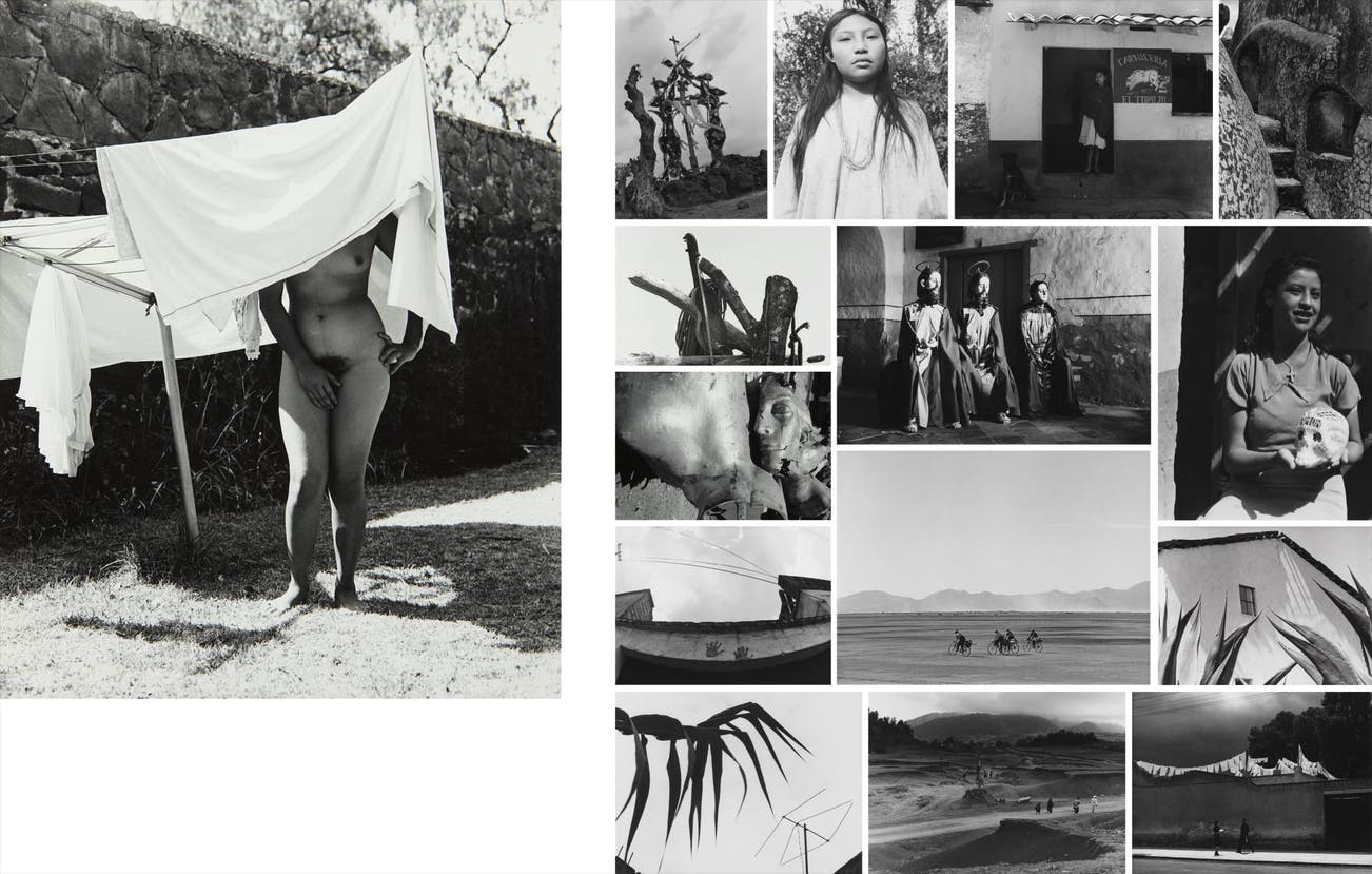 Titles include: Tentaciones en casa de Antonio (Temptations at Antonio’s house), 1970; Cruce de Chalma (Cross of Chalma), 1942; Margarita de Bonampak (Margarita of Bonampak), 1949; El Perro Veinte (Dog Twenty), 1958; Ventana al Coro (Window to the Choir), 1936; Violín Huichol (Huichol Violin), 1965; La Visita (The Visit), 1935; Diá de Todos Muertos (Day of All Dead), 1933; Angel del Temblor (Angel of the Earthquake), 1957; Manos en el 210 de Fernandez Leal (Hands on 210 Fernandez Leal), 1976; Bicicletas en Domingo (Bicycles on Sunday), 1966; Ventana a los Magueyes (Window on the Agaves), 1976; Carrizo y Tele (Reed and Television), circa 1976; Paisaje Chamula (Chamula Landscape), circa 1970; Qué chiquito es el mundo (How small the world is), 1942