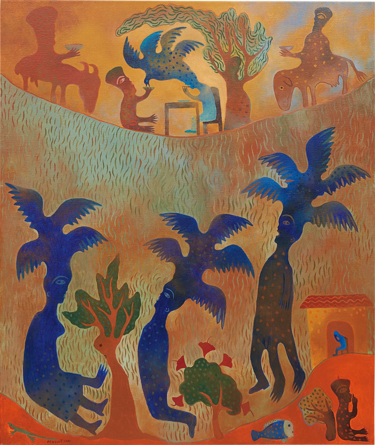 Signed "Mendive 2001" lower left.