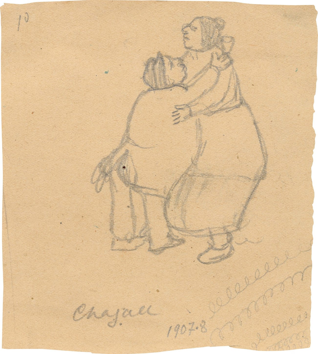signed and dated “Chagall 1907.8” lower center; inscribed "10" upper left