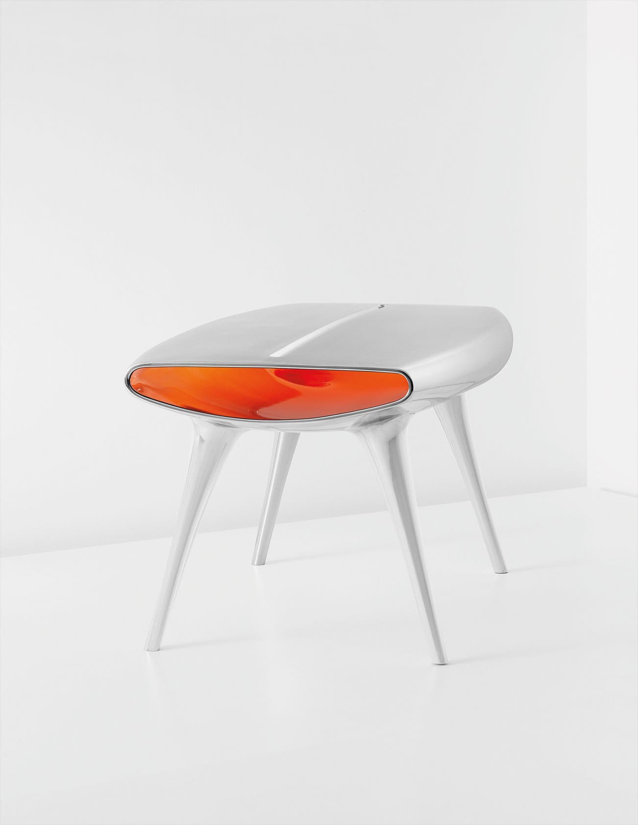 Produced by POD Edition, UK. Number 6 from the edition of 10 plus 3 artist’s proofs, plus 1 yellow version (3 orange versions within the edition). Tabletop impressed with manufacturer’s logo and dated ‘MARC NEWSON POD EDITION EVENT HORIZON 1992’ and underside with ‘MARC NEWSON POD EDITION’, ‘POD’, ‘6 / 10’ and artist’s mark.