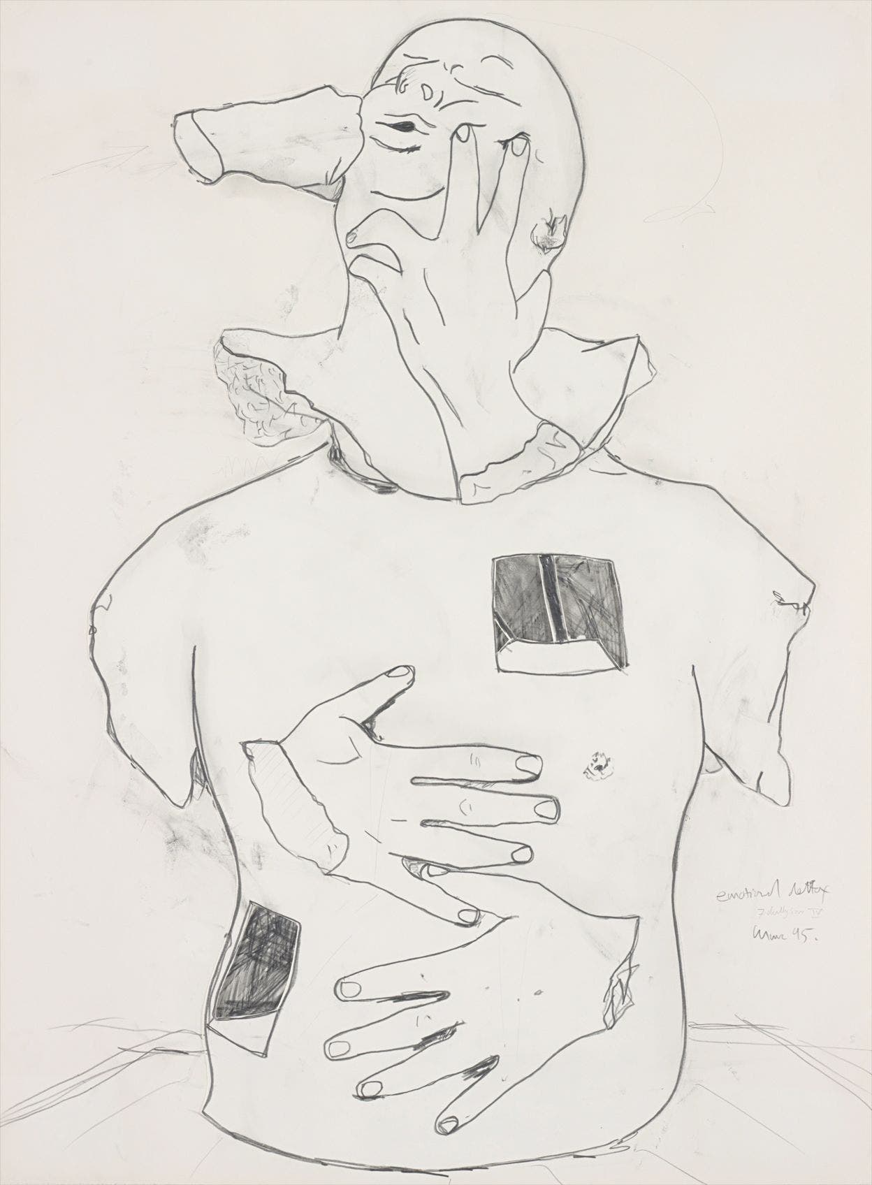 Signed, titled and dated 'emotional detox 7 deadly sins VI Marc 95' lower right.
