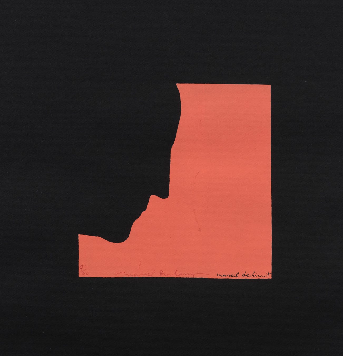 The title Marcel dechiravit incorporates the invented word 'dechiravit', a contraction of the French verb d échirer (to tear) and the adverb vite (quick). It alludes to the process Duchamp employed to create Self-Portrait in Profile - for each version the artist tore from a sheet of colored paper his profile portrait using a metal template outlining his profile. It is also a word play on the method of classical artists who signed their graphic work 'delineavit et sculpsit.' (who 'drew and carved' the work)