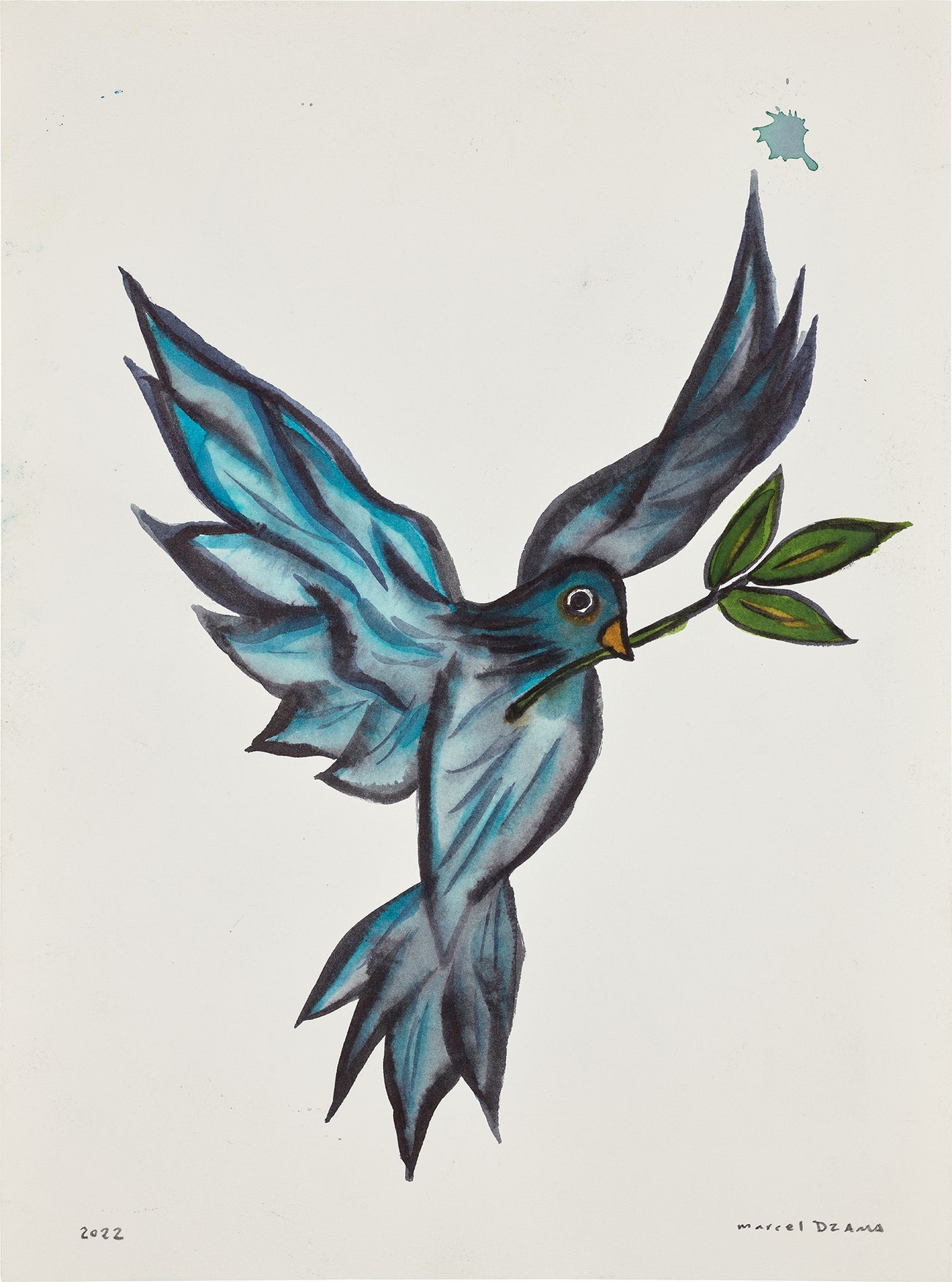(ii) signed, titled, inscribed and dated "Marcel Dzama 2022 Title: Why is the Dove Never Free." lower right