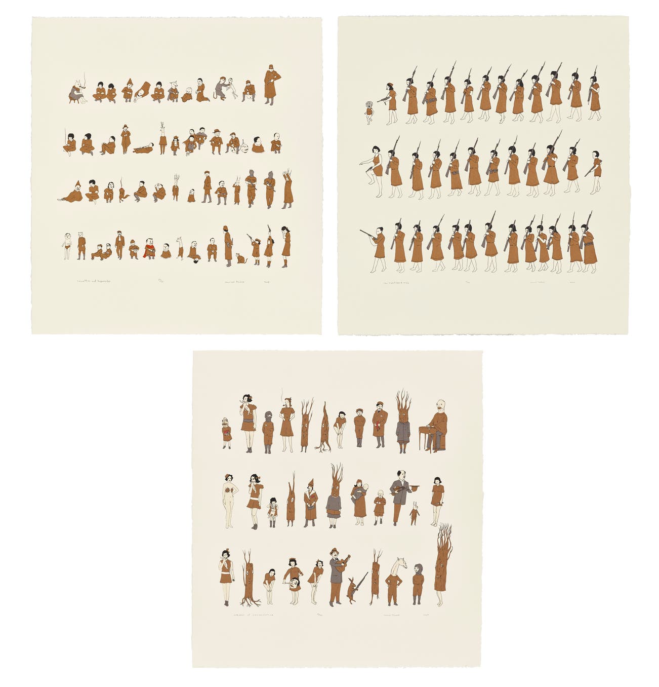 The set of three screenprints in colors with hand-coloring, on Stonehenge paper, with full margins.