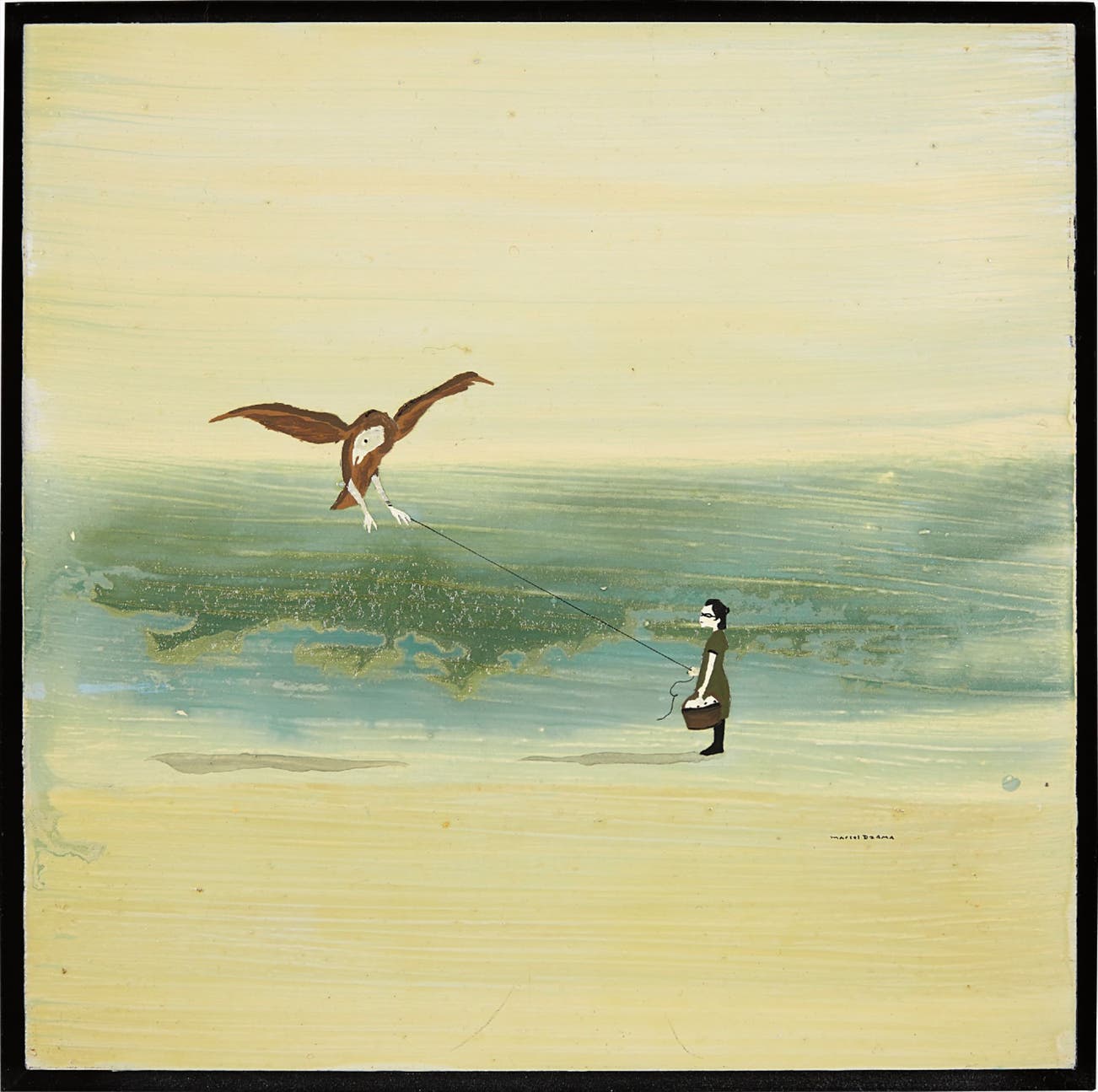 Signed "Marcel Dzama" lower right; further signed, titled and dated "Dzama 2003 Became an Airplane" on the reverse.