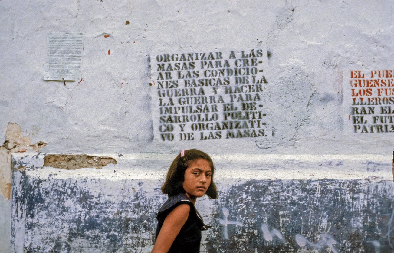 A young girl turns her head to look defiantly towards the camera; above her is a graffitied call for political resistance. This commanding photograph by Chilean photographer Marcelo Montecino was taken in 1979 in Managua, Nicaragua during what he remembers as one of the most significant moments in his career as a photojournalist – the victory of the Sandinista National Liberation Front against the Somoza dictatorship. From 1973 to 1988, he worked as a photojournalist, and throughout his 15-year career, he documented major political conflicts in Latin America. His candid approach to image-making enabled him to convey an intricate narrative in a single picture. ‘Spontaneity is the key,’ states Montecino, ‘I live for this incredible quality of photography that is its ability to quickly capture something that touches us.’