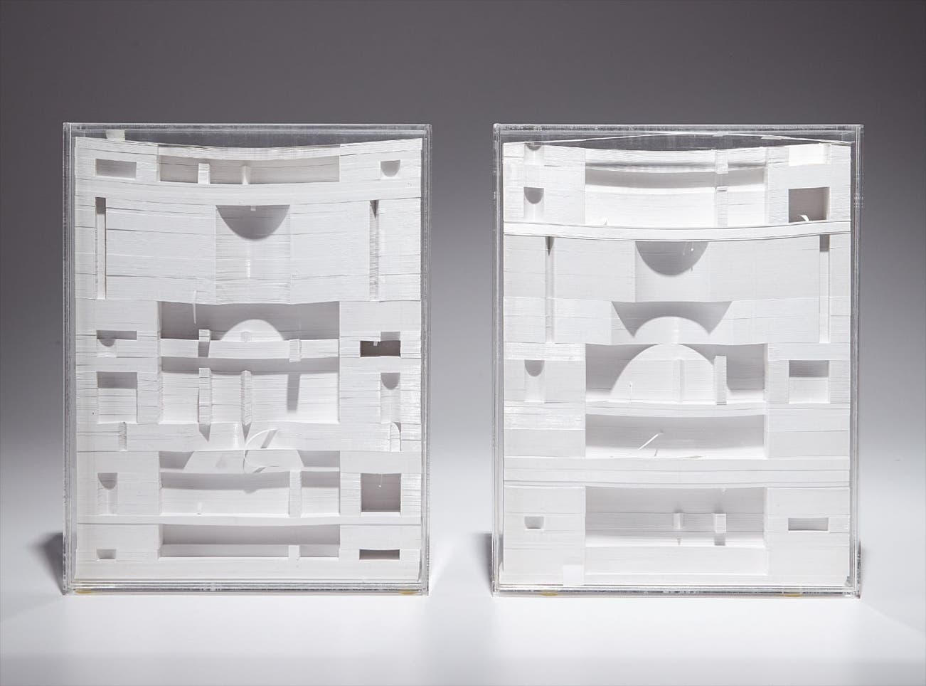 cut paper in Plexiglas case, in two parts