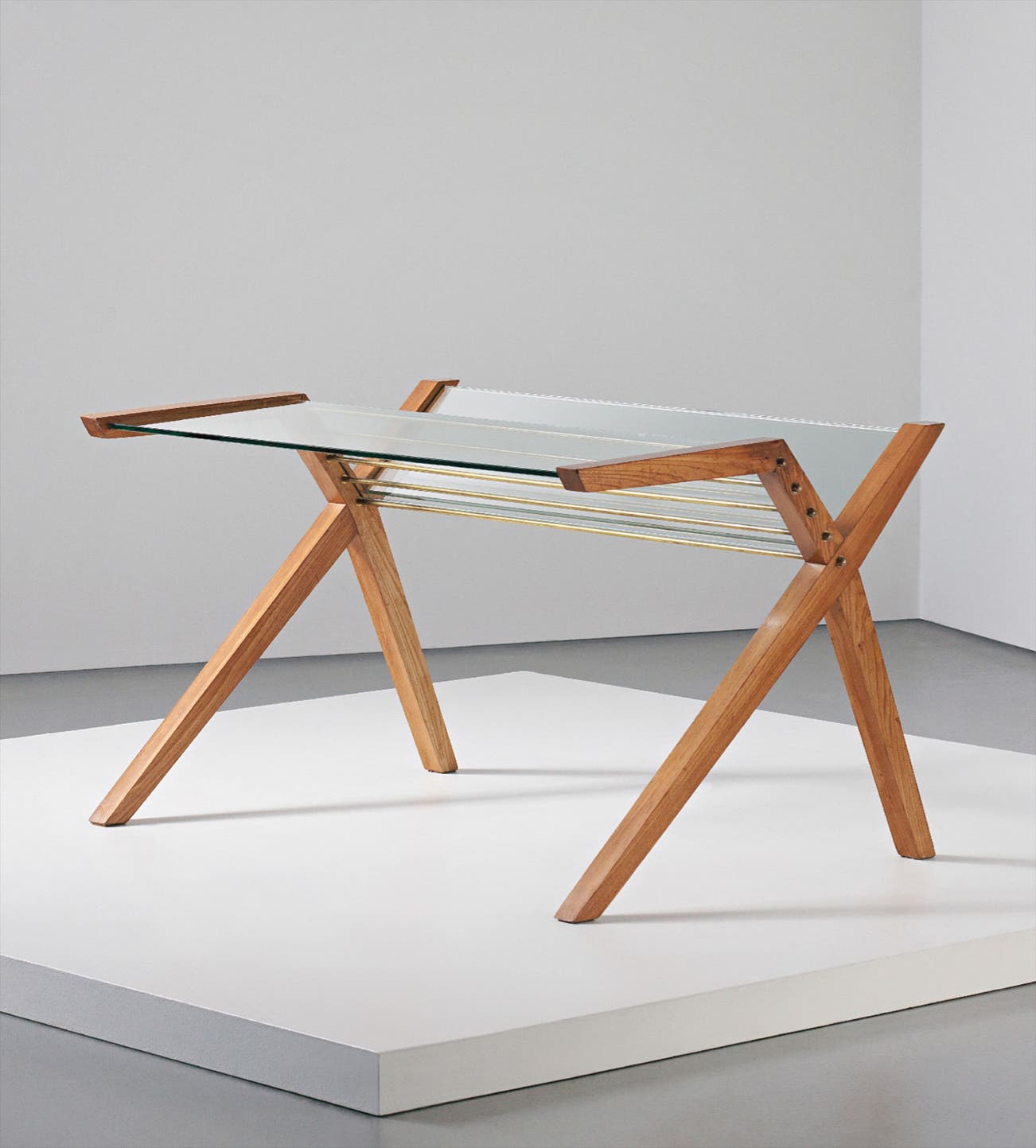 Glass, elm, tubular brass, brass.