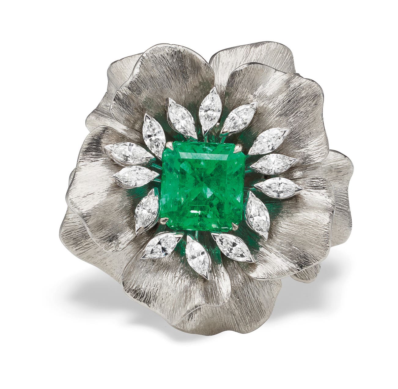 An Emerald, Diamond, Titanium and Gold Ring
