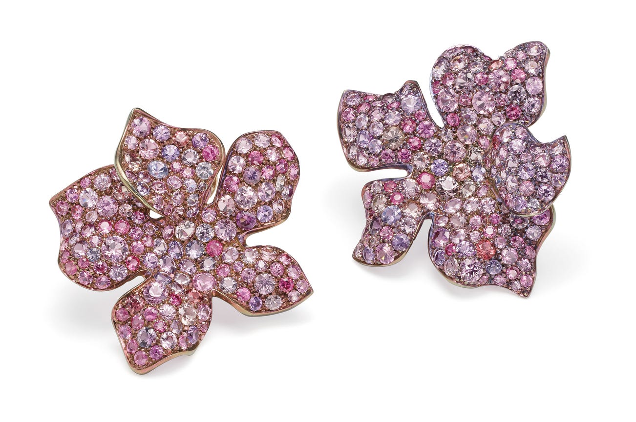 A Pair of Fancy Sapphire, Diamond, Titanium and Gold Earrings