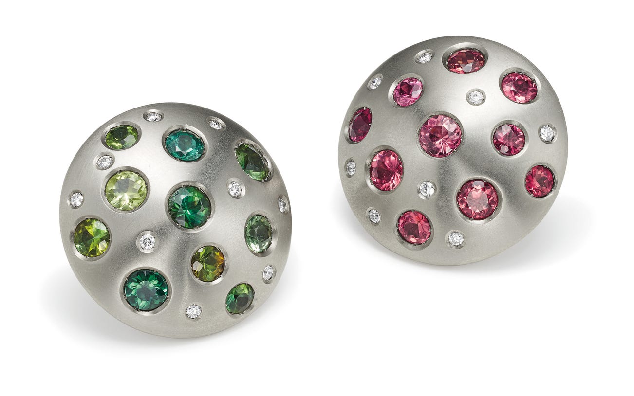A Pair of Tourmaline, Diamond, Titanium and Gold Earrings
