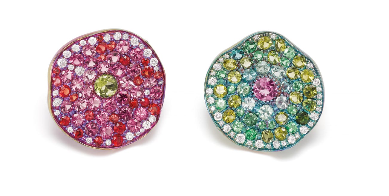 A Pair of Diamond, Multi-Gemstone, Gold and Titanium Earrings