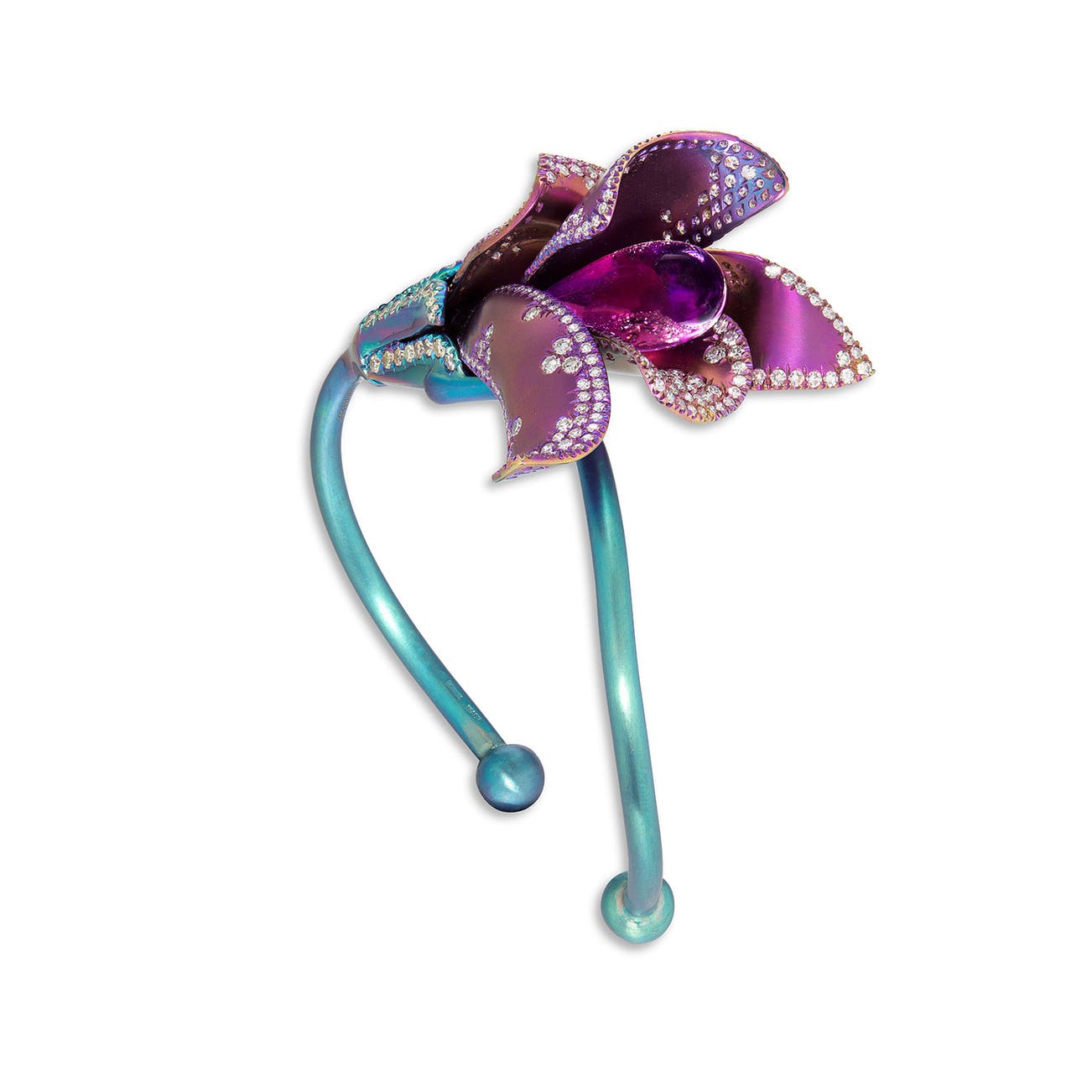 An Amethyst, Diamond and Titanium 'Flower' Cuff Bangle, Margherita Burgener