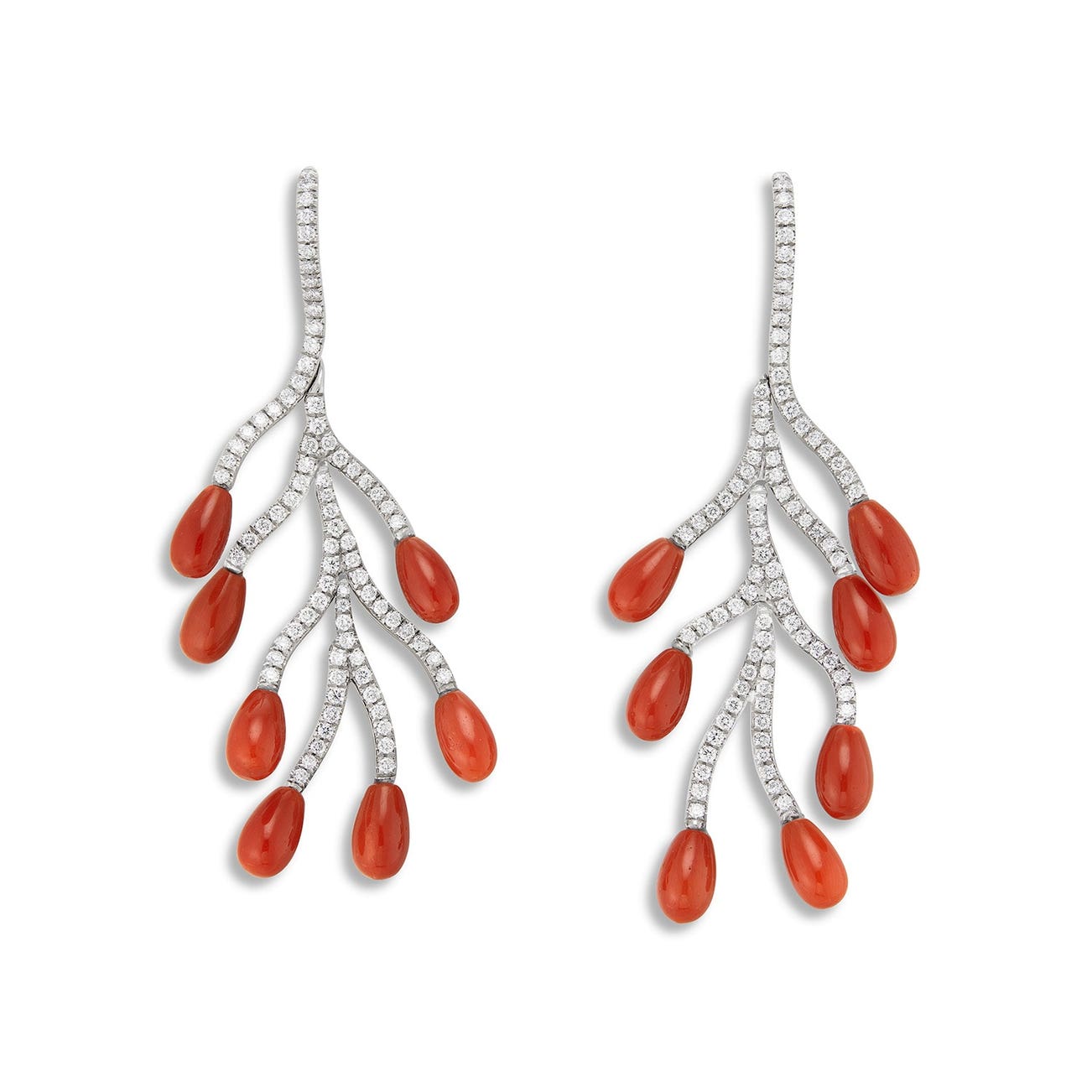 A Pair of Coral, Diamond and Titanium Ear Pendants, Margherita Burgener