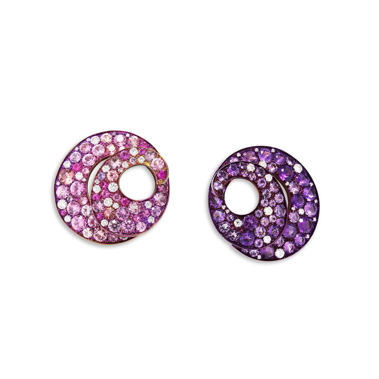 A Pair of Amethyst, Coloured Sapphire and Diamond Ear Clips, Margherita Burgener
