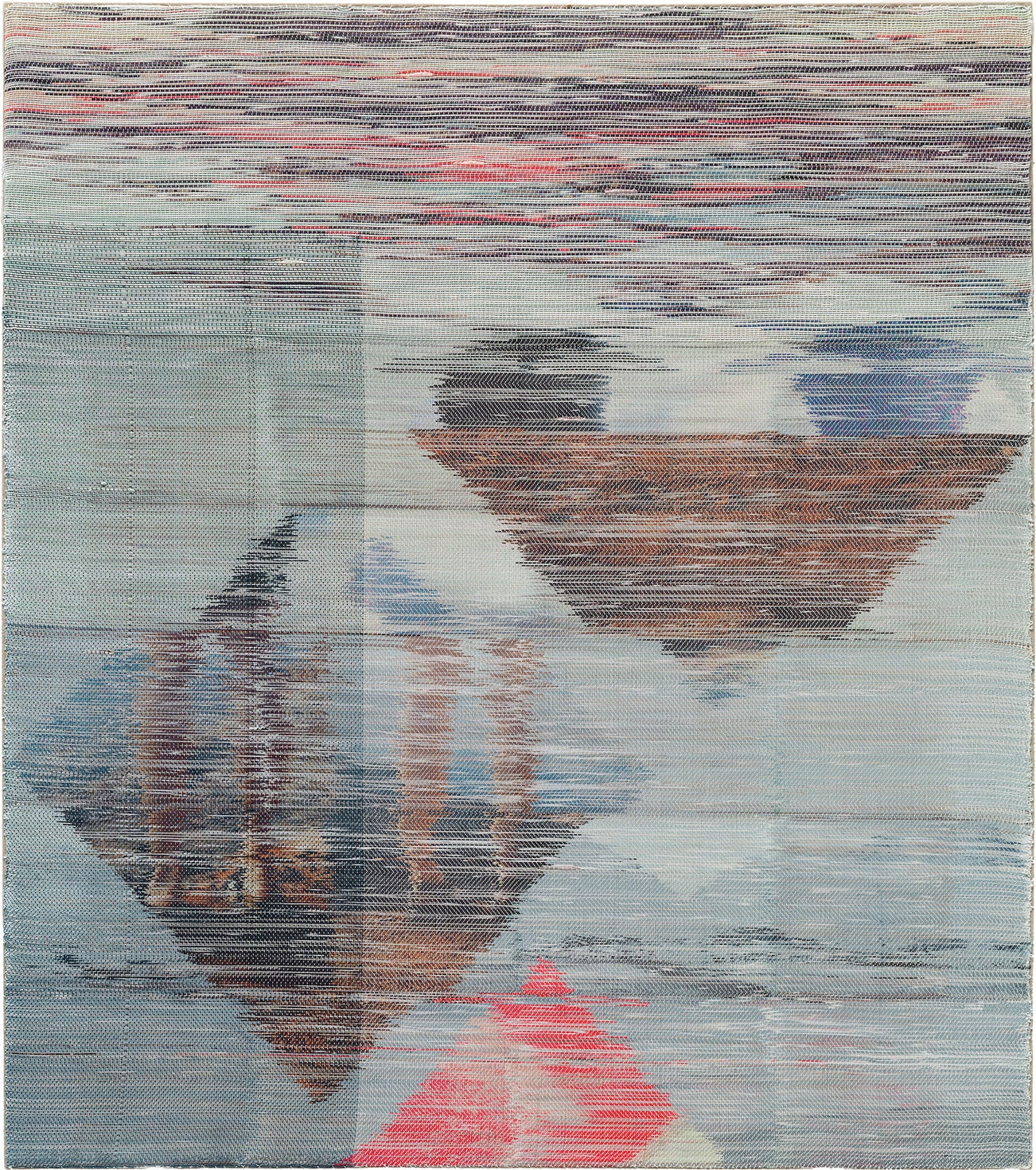 handwoven polyester, cotton, linen, dye-sublimation ink and fabric dye