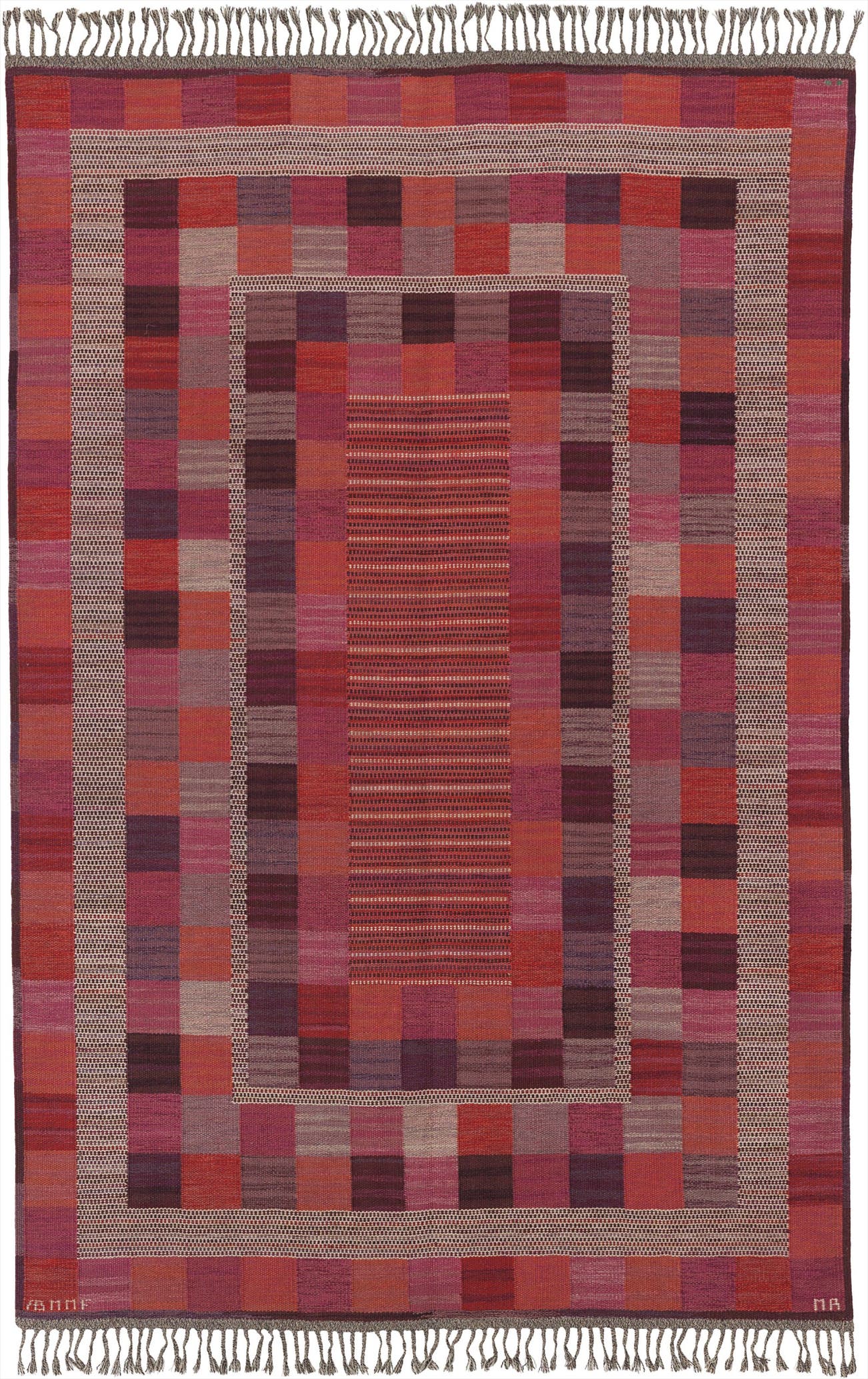 Produced by Märta Måås-Fjetterström AB, Båstad, Sweden. Woven with manufacturer’s mark AB MMF and artist’s initials MR.