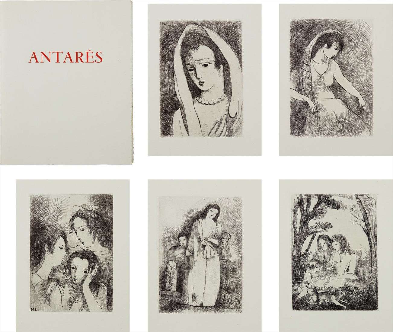 The complete set of five etchings, on Rives BFK paper, with full margins, the sheets loose and folded (as issued), title page and justification, text by Marcel Arland, all contained in the original hard-cover folio and paper-covered slip case.