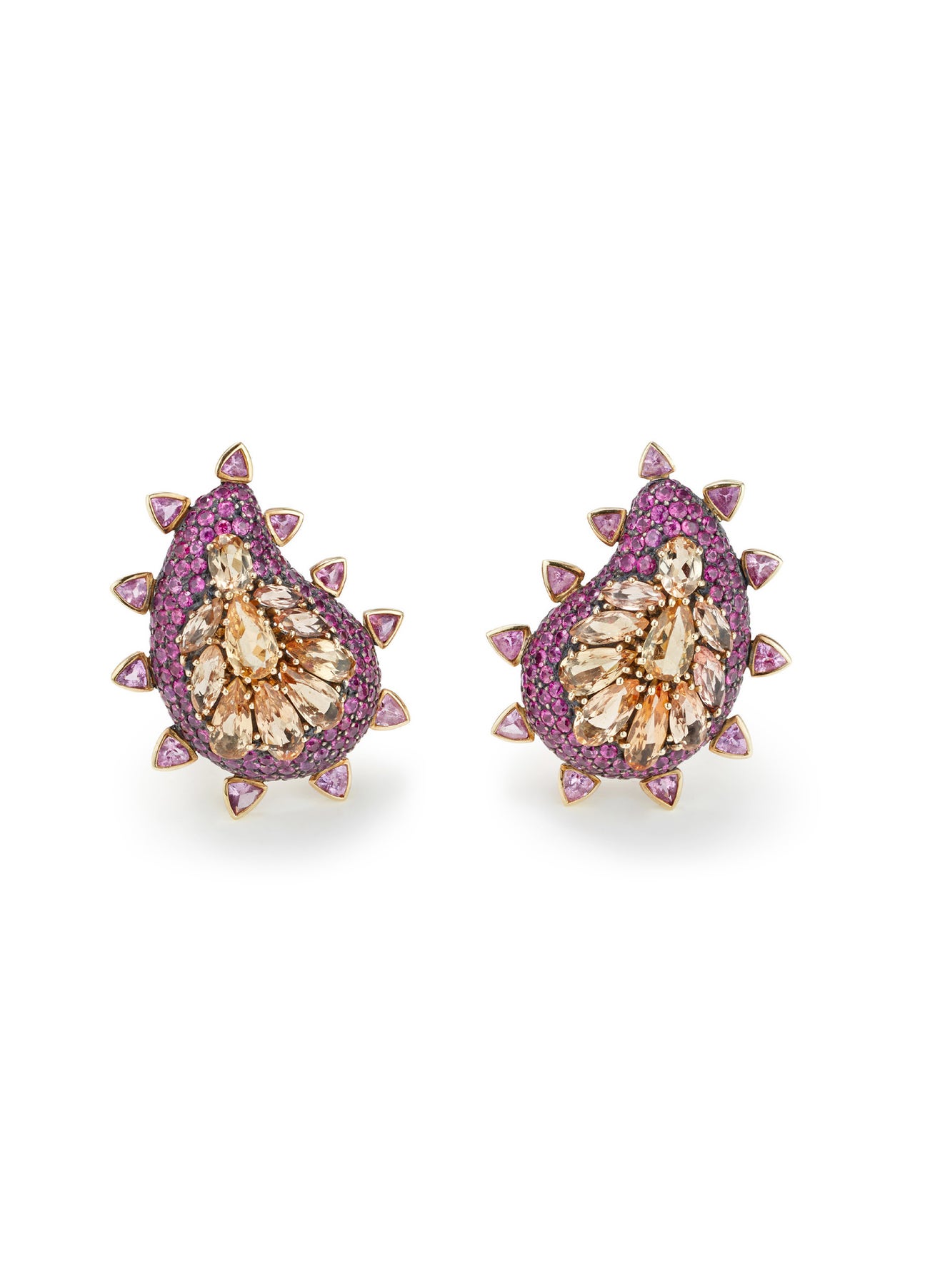 A Pair of Multi-Gem, Gold and Sterling Silver Earrings
