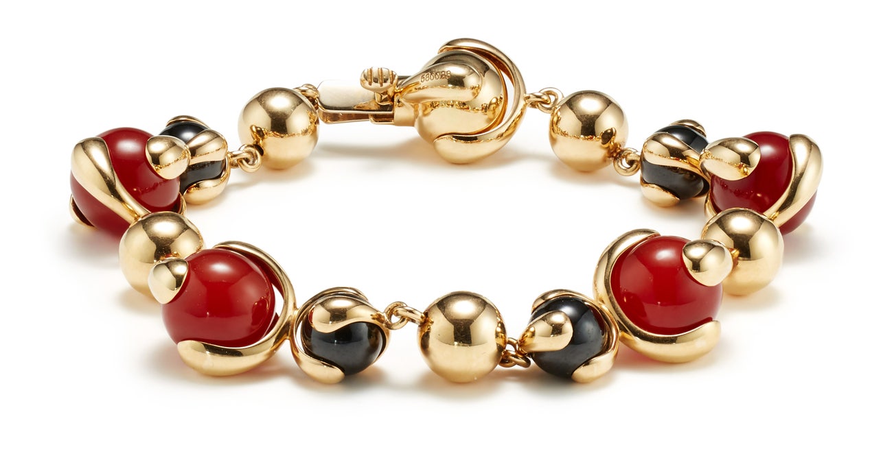 A Carnelian, Jade and Gold 'Cardan' Bracelet