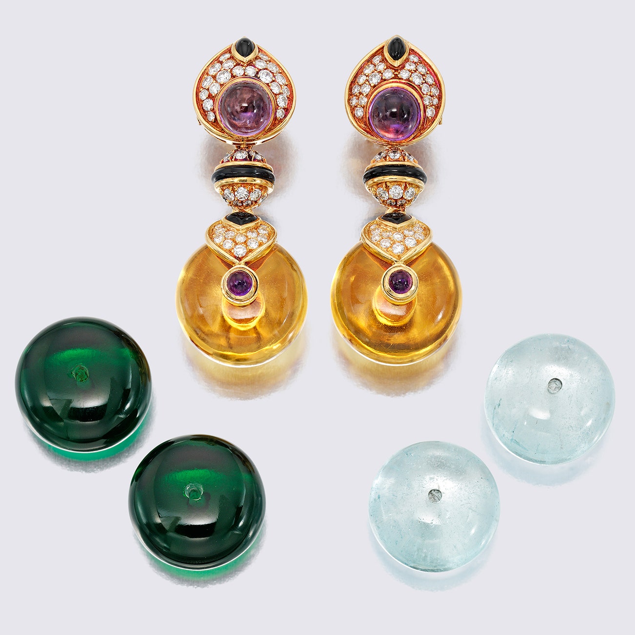 Pair of Interchangeable Gem-set and Diamond Earrings, 'PNEU'