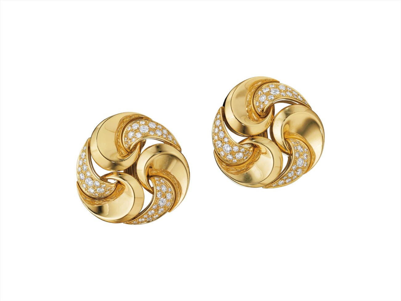 Marina B’s distinctive designs have come to define 1980s style: strong, graphic, highly stylised, yet with a feminine voluptuousness, encapsulated in her early Ondas or wave design, and in her signature motif, described as a ‘chestnut’ shape, curvaceous, flirtatious, poised between a triangle and a pear-shape. The triangle, in various iterations, including triangular-cut diamonds, ran like a leitmotif through her work. A Bulgari to her core, she revelled in coloured gems, particularly fashionable cabochons, but she set them alongside new materials, including black gold, which became one of her most recognisable signatures. She was deeply concerned with the relationship between design and structure, devising a spring-mounting technique for her signature chokers; creating modular jewels, with interchangeable elements, for versatility; and finding innovative ways of connecting beads – she detested the banality of simply stringing beads or pearls. In her hugely successful Pneu earrings, first created in 1978, she transformed the hole at the centre of a bead, the bellybutton as she called it, into a decorative feature, adorning it with a cabochon stone. She used all elements of her powerful visual vocabulary to incorporate stylised references to exotic cultures, Chinese, Japanese, Persian and Byzantine, another link to the jet-set era. Even more, understanding and capturing the mood of the moment, she designed jewels for women to buy for themselves, to suit their clothes, lives and lifestyles. In 1993 she moved to Monaco and retired in 1996. Today, the company continues under the creative direction of Guy Bedarida, in the Marina B spirit.