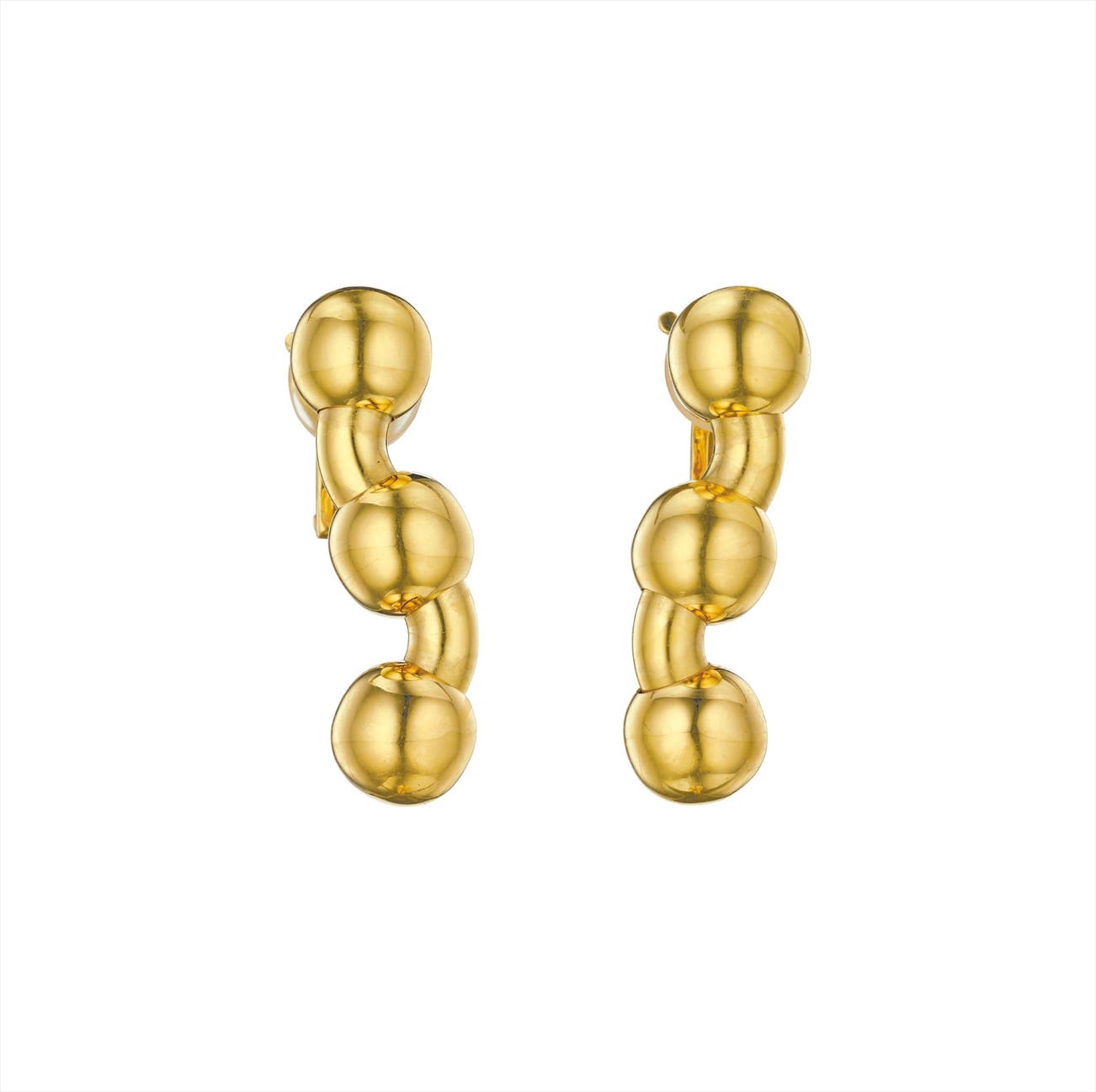 Marina B’s distinctive designs have come to define 1980s style: strong, graphic, highly stylised, yet with a feminine voluptuousness, encapsulated in her early Ondas or wave design, and in her signature motif, described as a ‘chestnut’ shape, curvaceous, flirtatious, poised between a triangle and a pear-shape. The triangle, in various iterations, including triangular-cut diamonds, ran like a leitmotif through her work. A Bulgari to her core, she revelled in coloured gems, particularly fashionable cabochons, but she set them alongside new materials, including black gold, which became one of her most recognisable signatures. She was deeply concerned with the relationship between design and structure, devising a spring-mounting technique for her signature chokers; creating modular jewels, with interchangeable elements, for versatility; and finding innovative ways of connecting beads – she detested the banality of simply stringing beads or pearls. In her hugely successful Pneu earrings, first created in 1978, she transformed the hole at the centre of a bead, the bellybutton as she called it, into a decorative feature, adorning it with a cabochon stone. She used all elements of her powerful visual vocabulary to incorporate stylised references to exotic cultures, Chinese, Japanese, Persian and Byzantine, another link to the jet-set era. Even more, understanding and capturing the mood of the moment, she designed jewels for women to buy for themselves, to suit their clothes, lives and lifestyles. In 1993 she moved to Monaco and retired in 1996. Today, the company continues under the creative direction of Guy Bedarida, in the Marina B spirit.