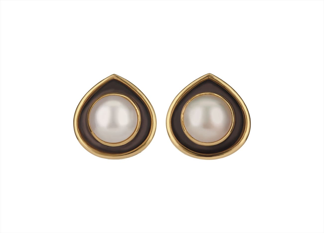 Marina B’s distinctive designs have come to define 1980s style: strong, graphic, highly stylised, yet with a feminine voluptuousness, encapsulated in her early Ondas or wave design, and in her signature motif, described as a ‘chestnut’ shape, curvaceous, flirtatious, poised between a triangle and a pear-shape. The triangle, in various iterations, including triangular-cut diamonds, ran like a leitmotif through her work. A Bulgari to her core, she revelled in coloured gems, particularly fashionable cabochons, but she set them alongside new materials, including black gold, which became one of her most recognisable signatures. She was deeply concerned with the relationship between design and structure, devising a spring-mounting technique for her signature chokers; creating modular jewels, with interchangeable elements, for versatility; and finding innovative ways of connecting beads – she detested the banality of simply stringing beads or pearls. In her hugely successful Pneu earrings, first created in 1978, she transformed the hole at the centre of a bead, the bellybutton as she called it, into a decorative feature, adorning it with a cabochon stone. She used all elements of her powerful visual vocabulary to incorporate stylised references to exotic cultures, Chinese, Japanese, Persian and Byzantine, another link to the jet-set era. Even more, understanding and capturing the mood of the moment, she designed jewels for women to buy for themselves, to suit their clothes, lives and lifestyles. In 1993 she moved to Monaco and retired in 1996. Today, the company continues under the creative direction of Guy Bedarida, in the Marina B spirit.