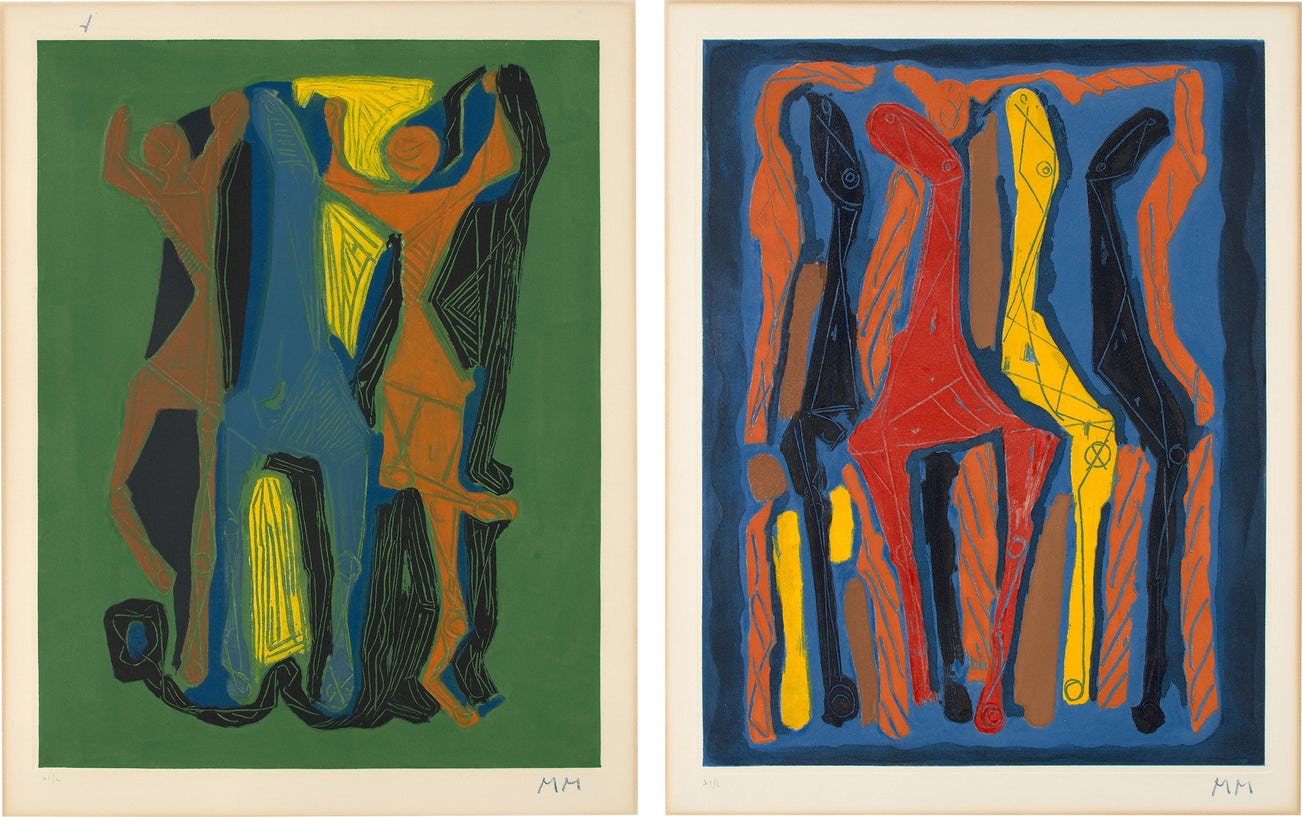 Two etching and aquatints in colors, on Arches paper, with full margins.