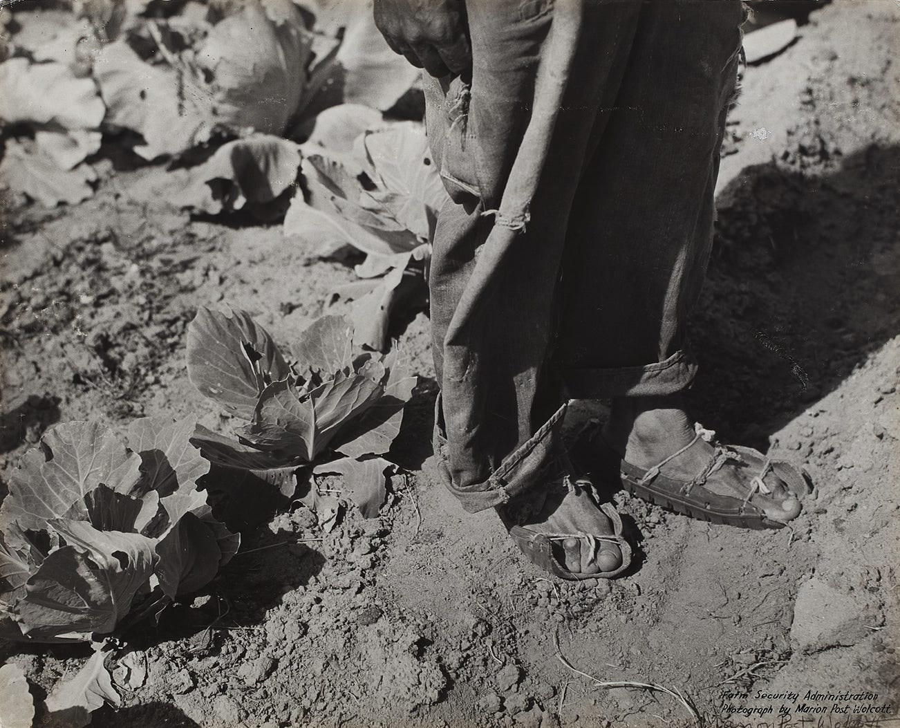 As suggested by the calligraphic credit on the recto, as well as its thick mount and large size, this photograph was almost certainly used by the Farm Security Administration as an exhibition print.