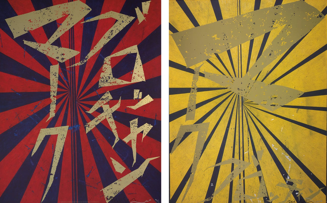 Each signed by both artists (Mark Grotjahn in black ink and Takashi Murakami in silver ink) and numbered 72/300 and 176/300 respectively in silver ink, published by Kaikai Kiki, Co., Ltd., Tokyo, both framed.