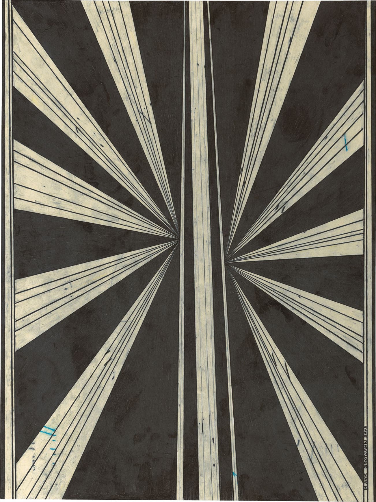 With his abstract and geometric pieces, Mark Grotjahn has distinguished himself as a leading artist amongst members of the modern and contemporary canon. Valued for his rigorous interest in optical illusions and perspective, Grotjahn works have been exhibited in numerous museums and are held in collections across the globe. Part of his celebrated and ongoing butterfly series Untitled is a mesmerizing and hallucinatory work. Strips of white radiate off-kilter from the centre of the print? in a bold and dizzying pattern. With their stark, starburst-like formation, the lines convey not just the body of the eponymous butterfly but also a sense of light, spirituality and speed.