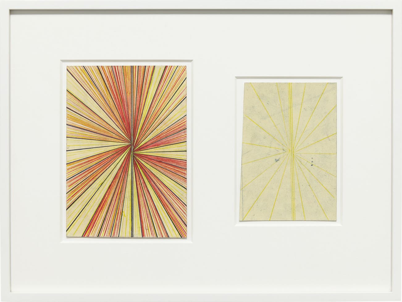 Titled and dated "Untitled (CR.CY and Cream Butterfly Blonde Butterfly Drawing in Two Parts) 2009" on the reverse of the right drawing.
